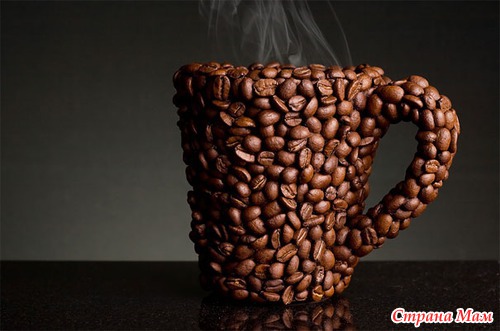 Кружка, полностью выполненная из кофейных зерен.