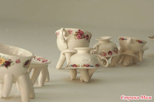 По замыслу дизайнера Ronit Baranga, чашки на керамических пальцах создают иллюзию того, что посуда может в любой момент сбежать с чаепития, если предмет разговора, например, ей не понравится.