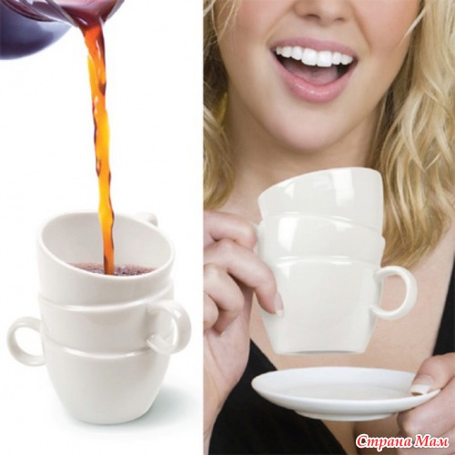 Сложенные горкой в раковине чашки вдохновили дизайнера Monica Tsang на создание шуточного концепта Тройной чашки.