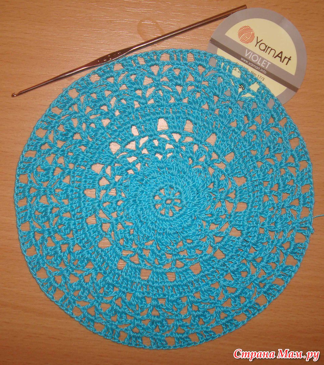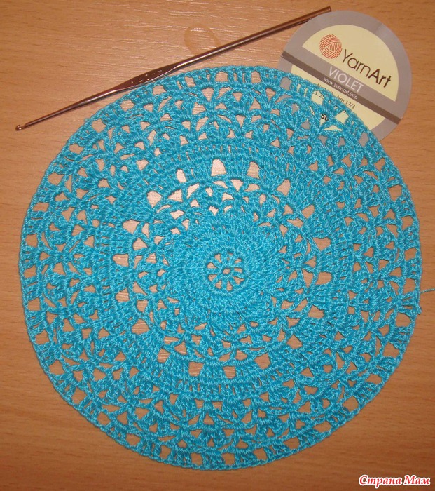 - пряжа Violet от YarnArt (100% хлопок, 282 м/50 гр) - 2 мотка (второго моточка уйдет совсем чуток). Или любая другая пряжа, подходящая по составу и метражу. Н-р, Виолетта от Ярна, Макси Мадам Трикот и т. д.;