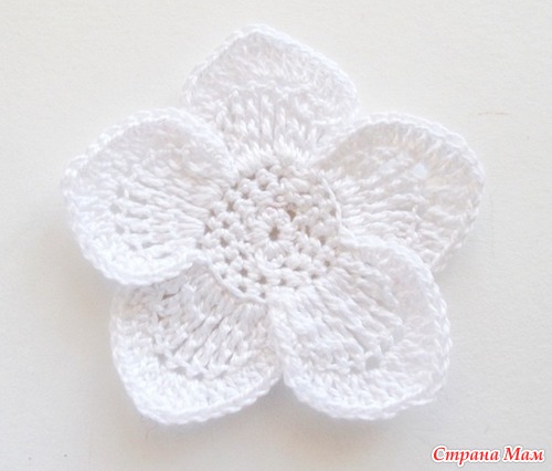 Для красоты примите за лицевую сторону ту, на которой вы вывязывали последний ряд каждого лепестка. Итак, вот что у нас есть.