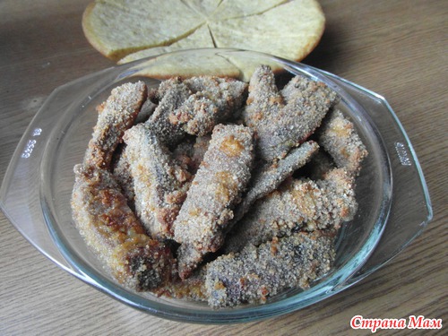 Молочная печень в сухарях.