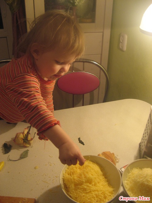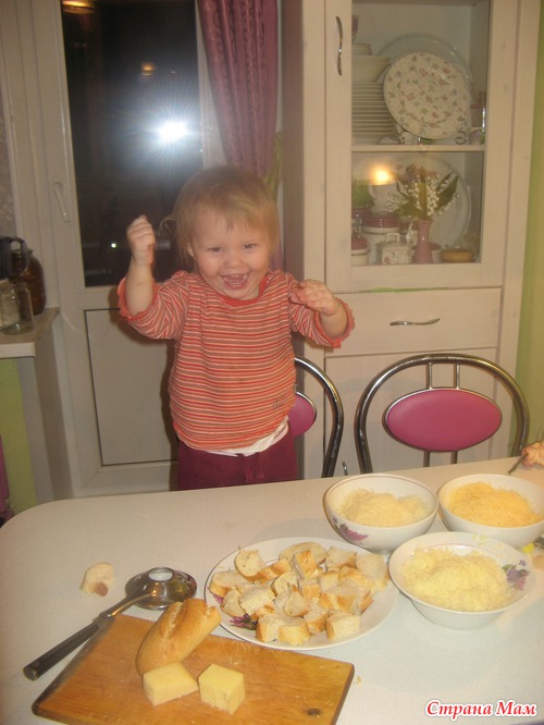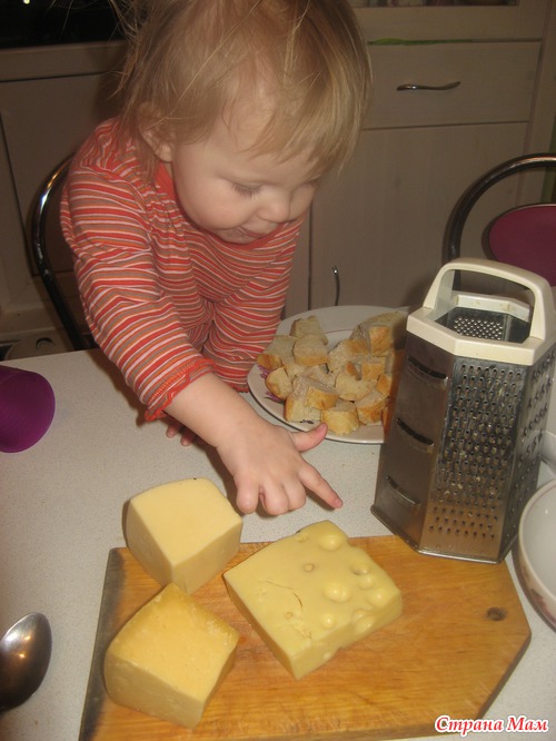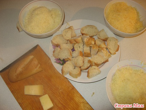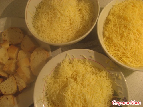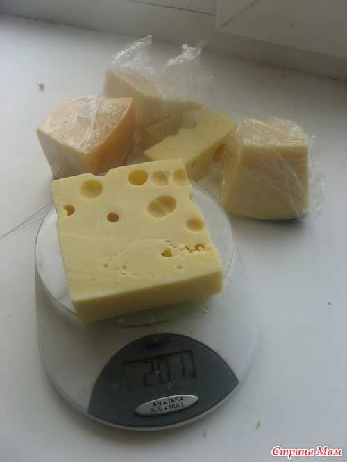 . В оригинальном рецепте нужны кусочки Грюйера и Эмменталь (у нас нашла последний с названием "Эмменталер"