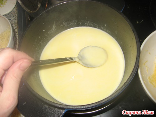 Здесь есть одна хитрость. Бывает, что сыр начинает пригорать и на донышке образуется корочка. Нужно часто мешать. Я ставлю кастрюльку на водяную баню - ко дну ничего не липнет.