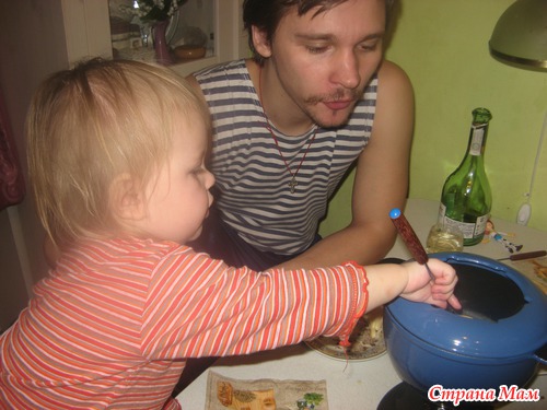 С Варежкой (то бишь Варварушкой) решили сделать фондю. По всем правилам. Если хотите, можем и вас научить, мы не жадные