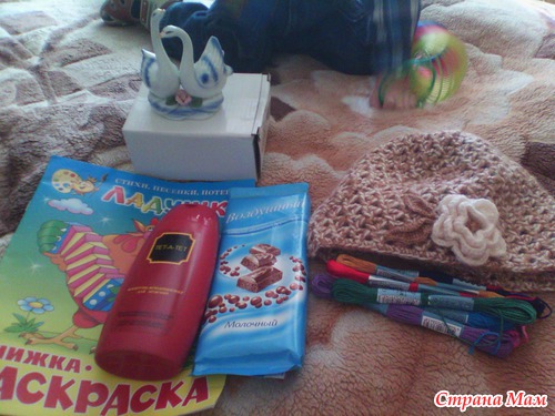 Вот что она мне прислала, это общий вид подарка( никак я не могла его полностью уловить, т. к. одни шаловливые ручки все время пытались что нибудь да утащить)
