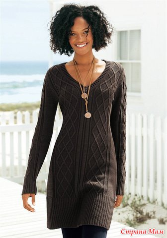 Вязаное платье-туника или платье-свитер в холодную зимнюю пору просто незаменимо