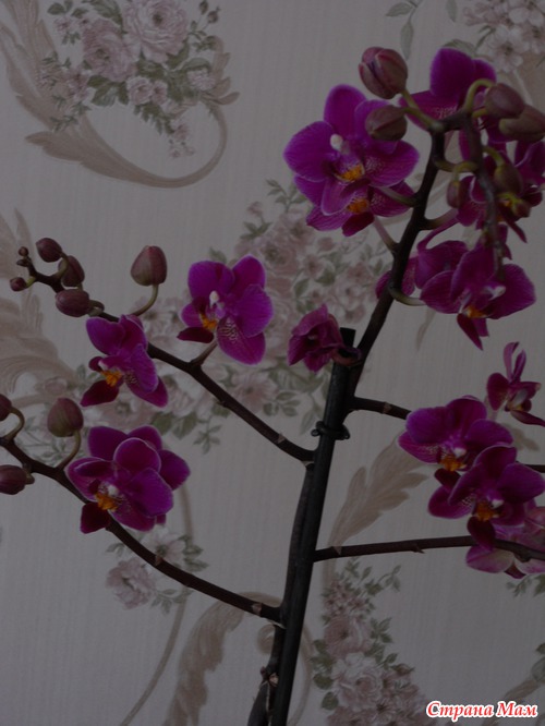 На моей веточке после 4-го последнего распустившегося появился еще бутон. Жди. А особого ухода и не надо. Просто 1 раз в неделю по мере высыхания корней я купаю их. Т.е. опускаю в емкость с водой на 30 минут. Воду наливаю отстоявшуюся по край горшка. Ну еще и подкомка спец.удобрением по инструкции. Мне ее подарили в июле на юбилей и вот снова расцвела. Было 2 цветоноса, а весной выпустила 3 ветку. Вот она меня радует. После цветения цветоносы не обрезай, на них и появятся новые цветы. Удачи. Будут вопросы спрашивай. Удачи!!!
