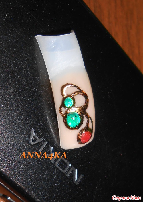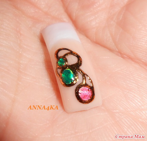 Глаза боятся, а руки делают)))Не хочется отставать от мастеров... Думаю, что первый блин не комом :-) Но, нет предела совершенству... В работе использованы гель-краска чёрная(EMI);переводная фольга золотая галографическая((EMI)на донышке камней);переводная фольга золотая;витражный гель(скульптурник смешанный с цветными гелевыми ручками).