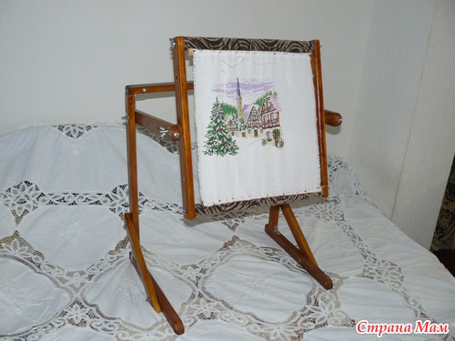 Хотела вышить эту вышивку к новому году,не успела,сломала руку,а вышивать хотелось и дальше начала :вышивать,левая рука в гипсе,муж посмотрел на мои мучения и сделал мне станочек