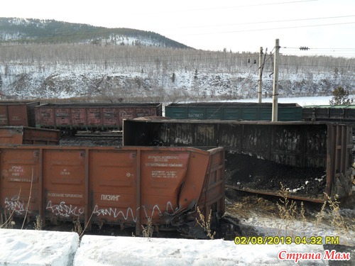 02 марта 2013 года в 15:02 (мск) на 6261 км перегона Маккавеево – Дарасун Читинского района Забайкальской железной дороги произошел сход 9 вагонов грузового поезда. Груз – уголь. Движение на участке приостановлено. Причина схода – излом боковой рамы тележки одного из вагонов. Для устранения последствий схода задействованы восстановительные поезда станций Чита, Оловянная, Шилка.