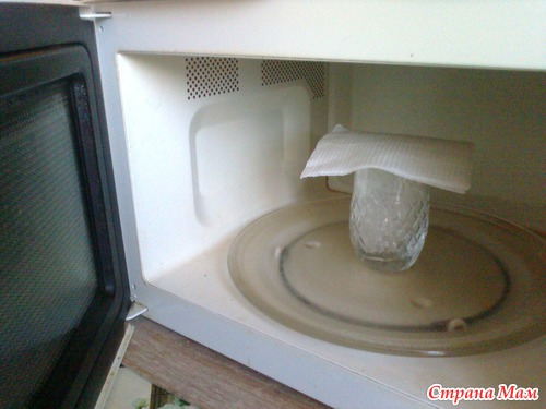 В 200 гр. стакан засыпать стружку или кусочки основы, накрыть салфеткой и поставить в микроволновку на ПОЛ МИНУТЫ (750W). Больше, чем 100 грамм в стакан не советую ложить, может "убежать".
