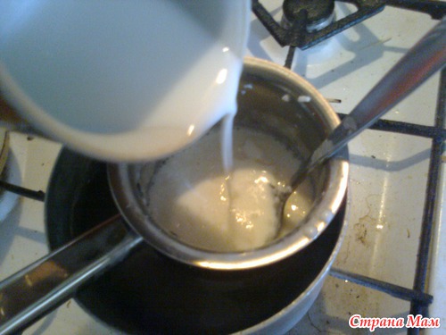 Расскажу как сделать белые сердечки. На водяной бане растапливаем натертое детское мыло (100 гр)., добавляем 1 ст. л. подс. масла и 150 гр горячего молока. Мне нужно, чтобы мыло было жидкое, т. к. я буду разливать его шприцем.