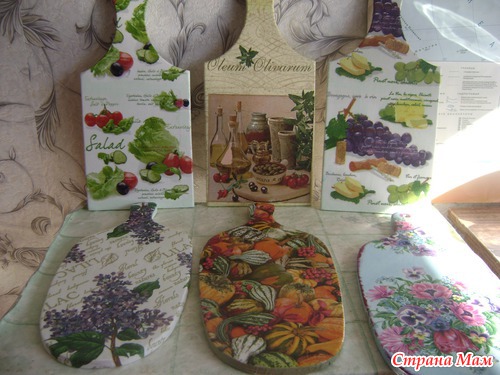Такие вот разные получились у меня досочки. Правда муж просил сделать одинаковые, но мне показалось, что это будет скучно и утомительно