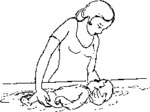 Затем дайте ребёнку отдохнуть 1 минуту в вертикальном положении.Для этого воспользуйтесь вертикальной поддержкой:левой ладонью с разведёнными пальцами обхватите грудь ребёнка.Тело ребёнка перевидите в вертикальное положение и слегка наваливайте его на свою левую ладонь так, чтобы ваш большой палец поддерживал подбородок малыша.Правой рукой поддерживайте затылок ребёнка.