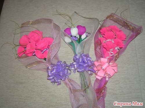 Благодаря Катюше (Катинка24) - https://www.stranamam.ru/post/5090251/, у меня получились такие замечательные букеты для моей мамочки и лучшей подруги. Спасибо ей огромное!