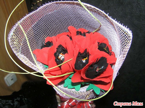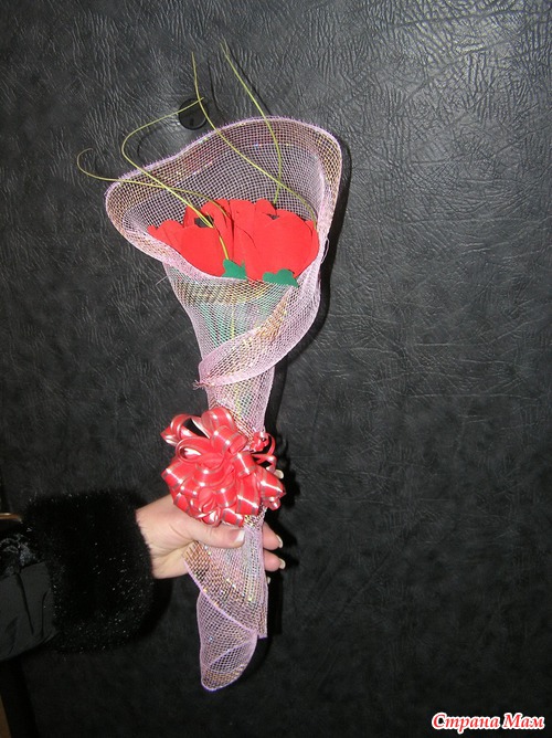 Еще помимо этого, сделала букетик тюльпанов для бабушки мужа и маки для свекрови. Маки фотографировала уже в руках у свекрови - обменялись подарками раньше, чем планировала