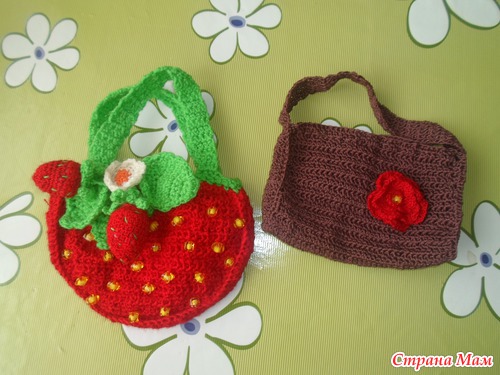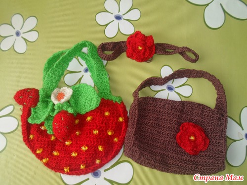 К празднику связались у меня вот такие сумочки! Для племяшек, одной 2 годика, другой 1 годик. Думаю Девчушки будут рады! Еще не дарила, вечерком поедем. Сумочка "Клубничка" ( вид спереди) Вид сзади Ну и сами клубнички И еще один комплект Читать полностью