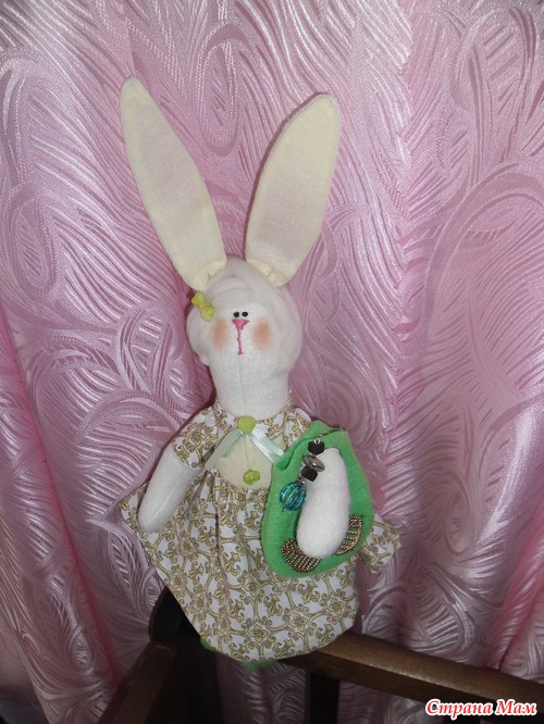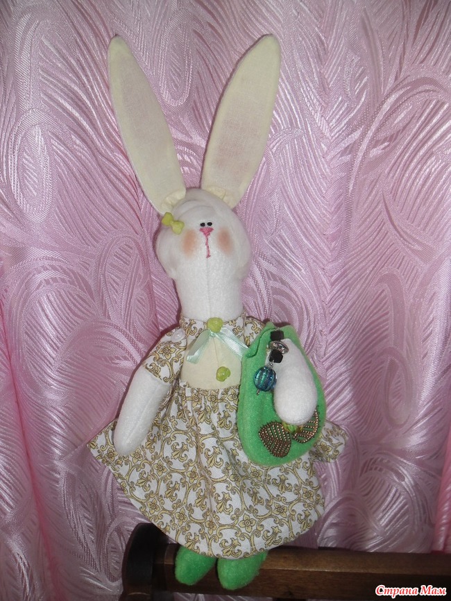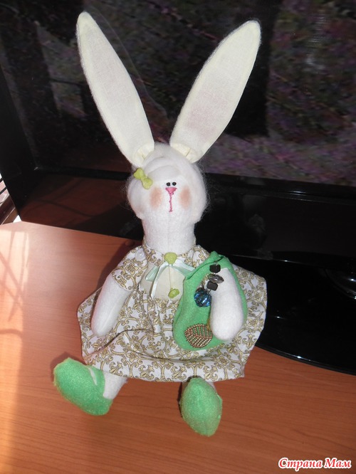 В честь 8 марта родилась вот такая весенняя зайка, выбражуля и модница)))Нарядилась деваха, прическу навела, сумочку в руки и женский день покатилась отмечать))Материалы:американский хлопок, гипюр, флис, атласные ленты, бусинки, заколочки, волосы-альпака беби, наполнитель-синтепух. Жаль, фотик неточно цвета передает, сумочка и туфельки ярко-зеленого травяного цвета))