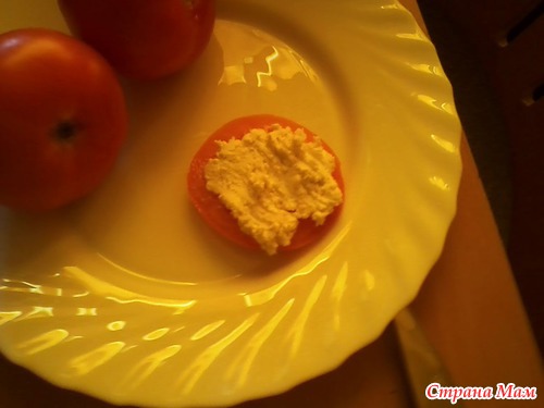 На помидоры выложила начинку.