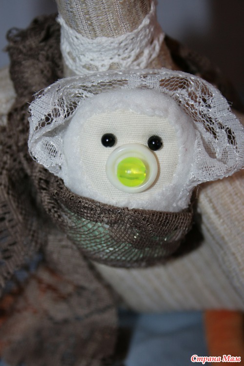 Это лялик поближе. Вот я уже и подарила его, а сейчас смотрю на фотку и понимаю, что щечки малышу забыла нарумянить. Придется в гости идти, исправлять оплошность.