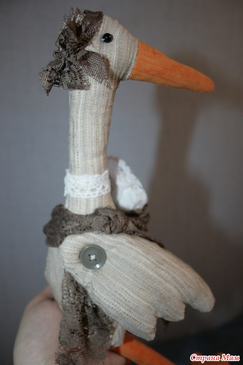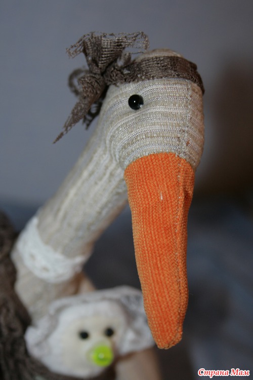 Эту птичку счастья я подарила своей подружке. Она очень-очень хочет ребеночка, но не получается пока. Пусть этот аист принесет счастье в их дом, охраняет и обогревает семейный очаг. Подружка была просто счастлива. Вот несколько фотографий.