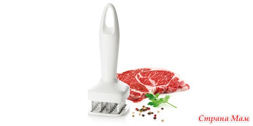 Увидела в рекламе иностранной по TV какое-то приспособление для подготовки мяса на отбивные. Сколько в магазинах смотрела - НЕТ! И тут знакомая предложила именно эту штуку. Называется она мудрённо: тендерайзер или стейкер , а проще Размягчитель мяса . И дешевле, чем на сайте для продажи предлагают. Конечно, ВЗЯЛА!!! Подарочков же мало мне было на 8 Марта, сама себе ещё сделала. А как же без кухонного-то оборудования.