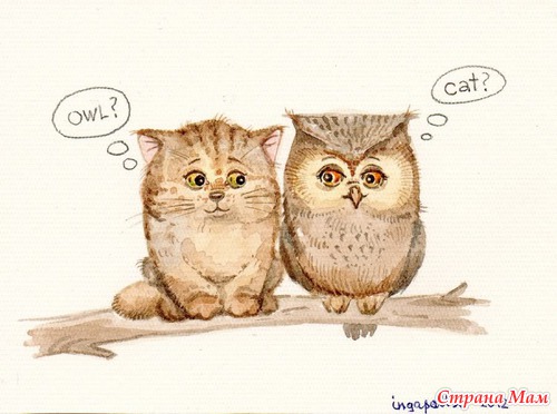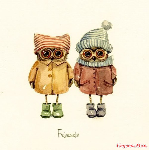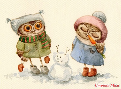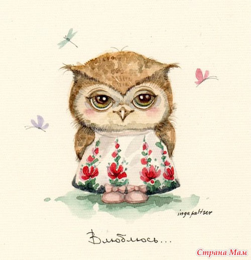От нежных и тёплый рисунков молодой художницы Инги Пальцер впадаешь в умиление и радость. Совушки на её картинках такие живые и такие игрушечные одновременно...