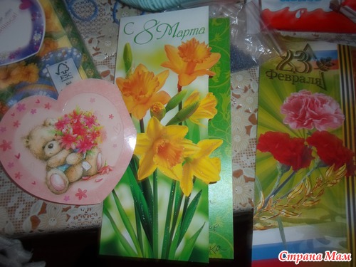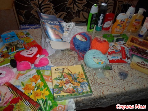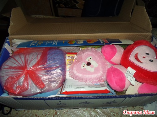 Вот и я к весеннему празднику получила замечательную посылочку "Три праздника". А прислала мне ее странамамочка Евгения ( Максимушкина мама). Еле дотащила ее до дома, ну а открыв ее нас с мужем ждал большущий сюрприз... Вот она целиком, что еле влезла в кадр