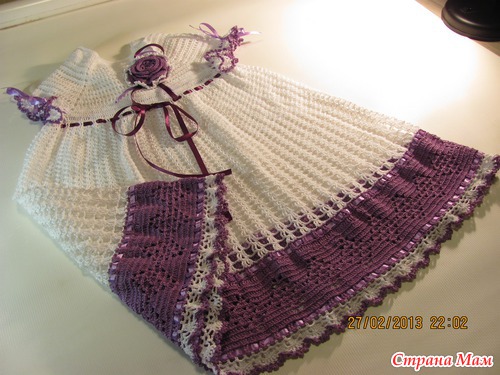Смотрю участницы вязального конкурса вылезают из кустов, решила и я показать свое платье. Только начала вязать платье смотрю конкурс объявили и решила первый раз в нем поучаствовать, было очень приятно следить за голосованием, и особенно благодарю всех кто проголосовал за него. Каков итог конкурса еще не известно, но я видела что мое платье нашло своих поклонников