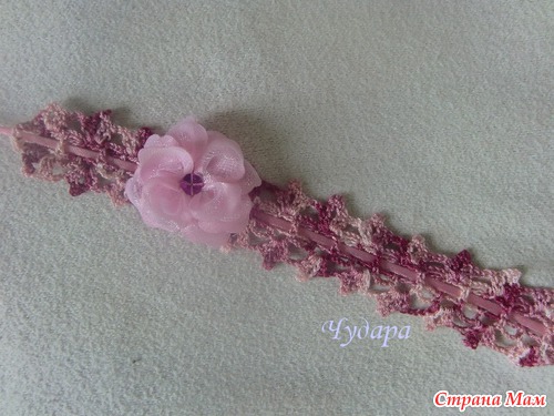 Кокетка связана пряжей Ализе Фореве, ушел 1 моточек - 50гр. Украсила цветочком, сделанным из ткани юбки. Добавила повязочку