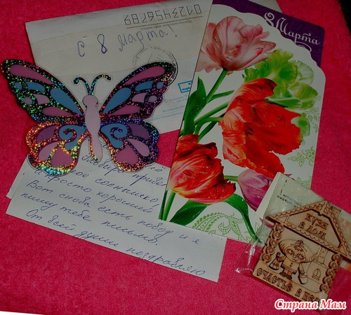 Красивая открыточка, трогательное письмо, блестящая бабочка, ее можно прикрепить куда-нить и Кузенька мой второй доехал красавчик