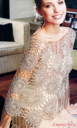 Накидки на плечи все более чаще входят в наш гардероб, они практичны, нарядные, а если связаны из шерстяной пряжи - так еще и теплые.