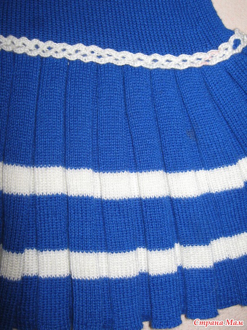 На юбку вышло 4 полных игольницы по 200 игл. 400 игл убралось на 120 петель с которых начинала платье.