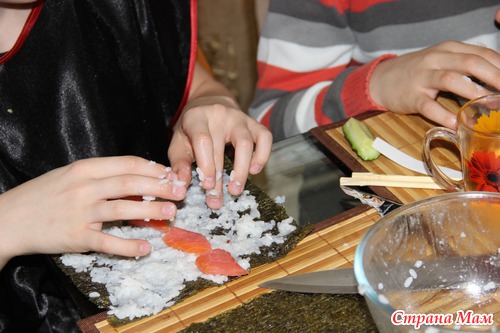 Старший сын провел мк по изготовлению суши.