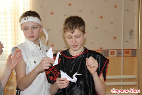 Конечно, традиционное японское оригами. Тут уже средний сын мк провел. Делали лебедя.