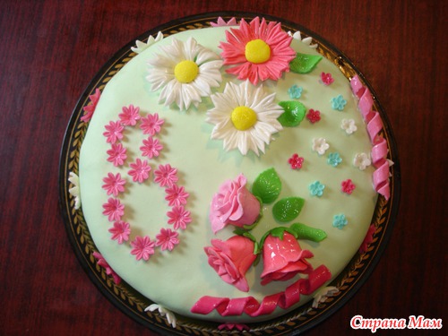 Продолжаю обучаться работе с мастикой. Вот такой тортик, для всех моих гостей на 8 Марта.