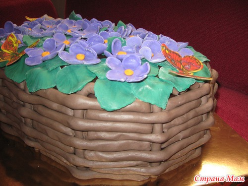 Хотела подсказать по поводу цветов в корзинке: для большей естественности стоит оттенять листочки сухими красителями или хотя бы какао.