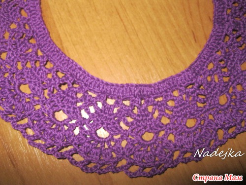 7-й ряд:3 воздушных петли подъема, * *воздушная петля, столбик с накидом в арку предыдущего ряда* - повторять 6 раз; 1 столбик без накида в арку предыдущего ряда,* - повторять до конца ряда;