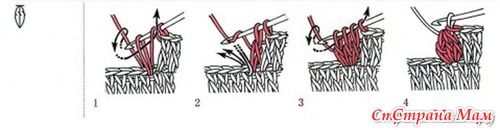 2-й ряд: столбиками с накидом (можно его пропустить и вязать дальше по схеме)