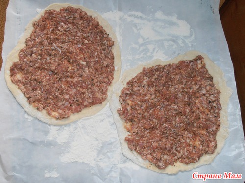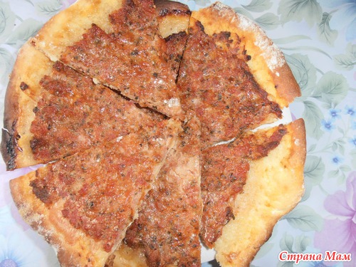 Варила суп с фрикадельками остался мясной фарш, ну тут вспомнила, что наш начальник поделился вкусным рецептом ТУРЕЦКОЙ ПИЦЦЫ, вот решила и я, а оригинал здесь https://www.stranamam.ru/post/5017781/, правда аджика у меня тоже самодельная.