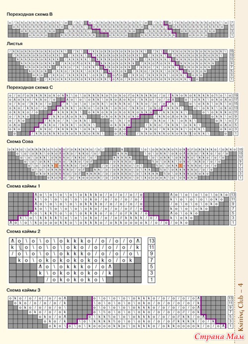 И как резюме: почти закончила переходную схему С. Повтор схемы "листья" - выполнила 2 раппорта, остальные схемы повторения толчно по описанию. Осталось связать еще 36 рядов до конца шали
