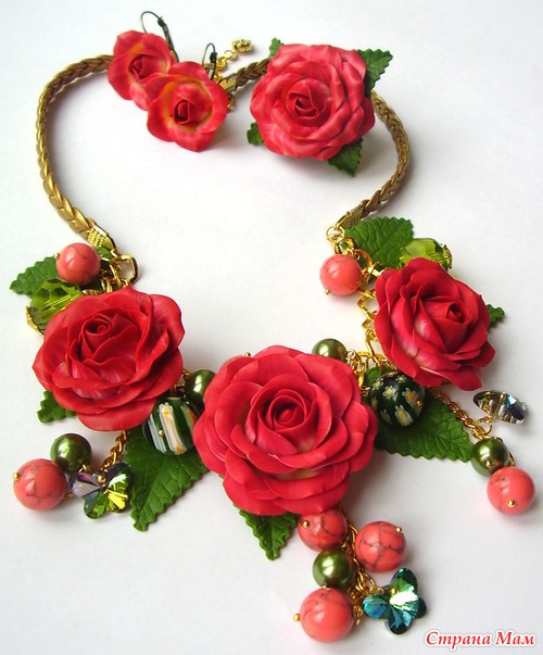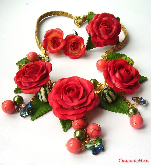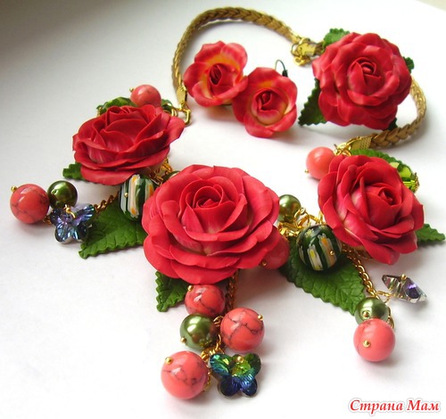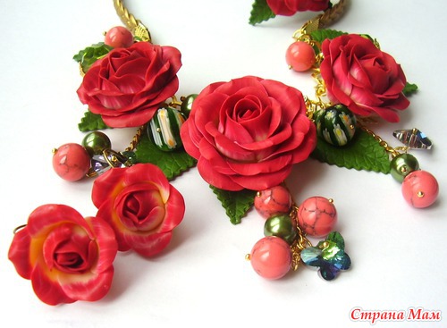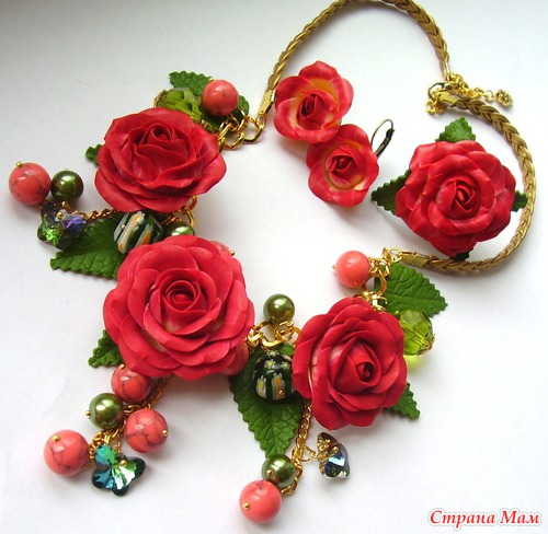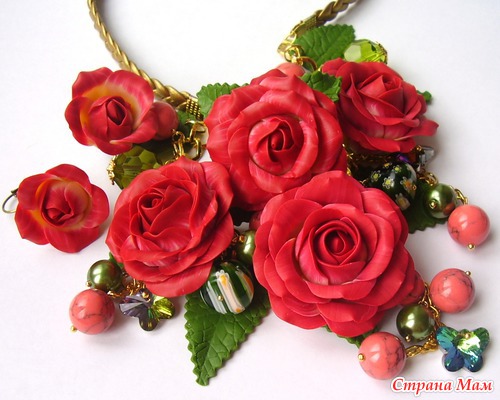 Классно! Все очень красиво, Кать... единственный недостаток, ну вот не поверю ни за что, что ЭТИ розы из полимерки? Могу поверить, что это НАСТОЯЩИЕ розы, которые ты каким-то образом заморозила, засушила, забальзамировала... а потом прикрепила на колье. А на полимерную глину не похоже... совсем... ну не обессудь. У меня тоже сейчас послепраздничные розы стоят, но, хоть убей, с этими отличий найти не могу... Таким образом, если рассуждать логиццки ... поскольку отличий нету, то стало быть мои розы и твои розы одинаковые... а мои точно не из полимерки, я даже специально листик пожевала... следовательно нас, маленьких безобидных любителей цветов из полимерной глины намеренно вводят в заблуждение! Вот!