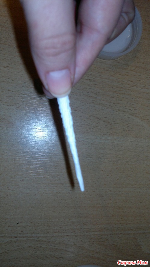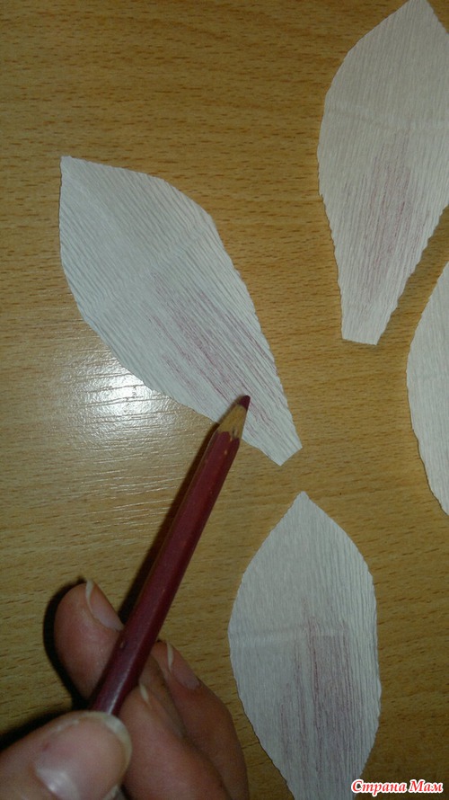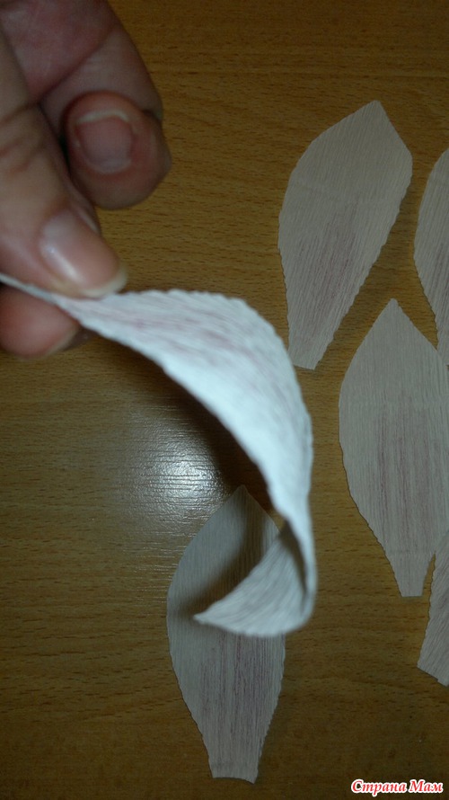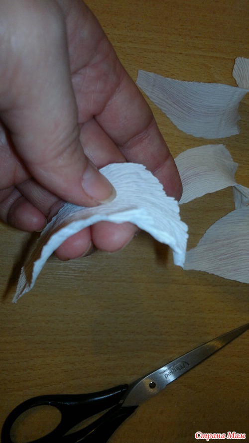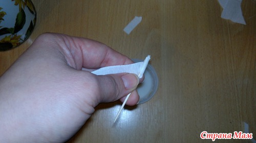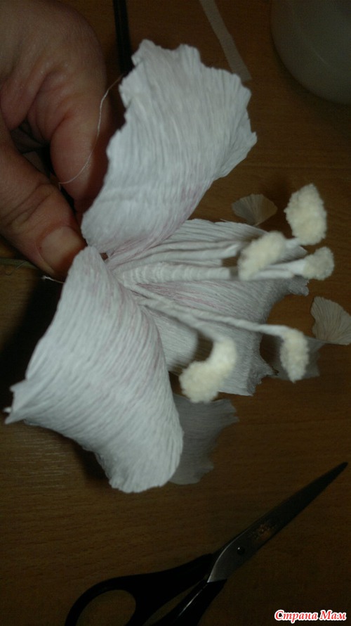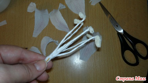 В нее вставляем узкую полоску гофробумаги и обматываем тычинку