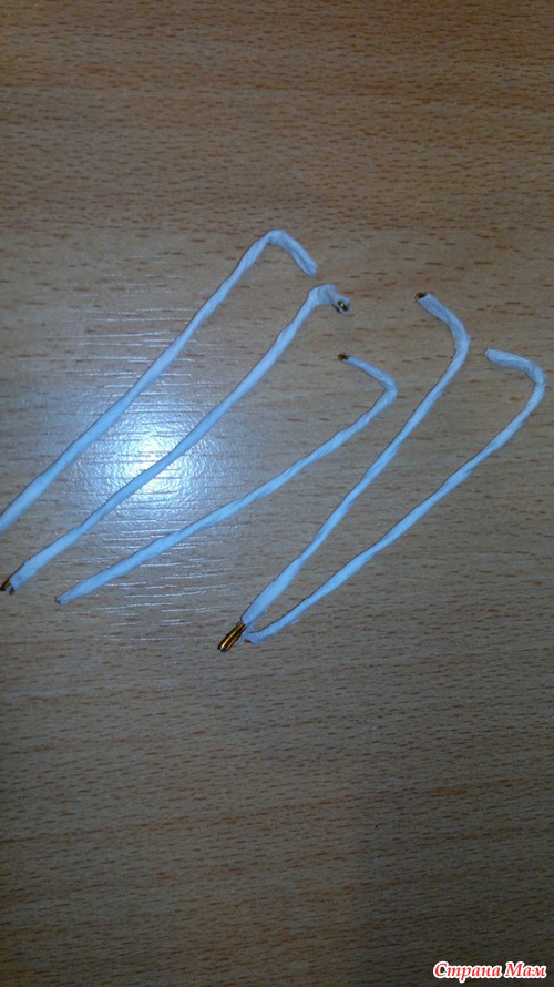 Нарезаем из проволоки тычинки лилии(около 12см длины), сгибаем пополам, делая небольшую петельку