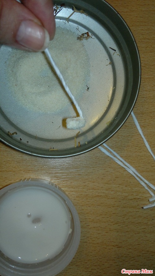 обмакиваем края тычинок сначала в клей, а затем в манку