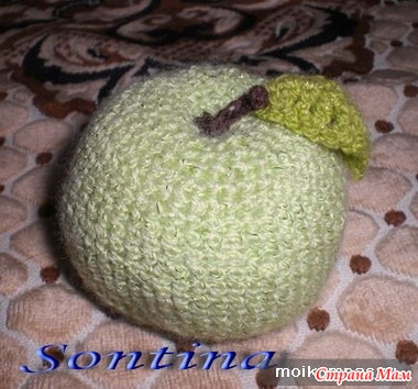 Для яблока тоже нужно связать шарик, а затем через центр протянуть нитку, что бы получилось углубление, и закрепить её.