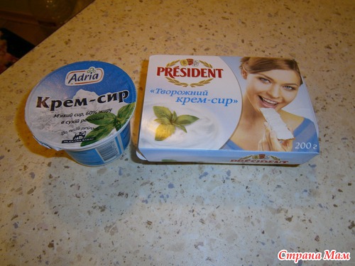 Вместо Филадельфии я обычно использовала Творожный крем-сыр Президент, но тут в магазине мне попалось что-то новенькое, их Словакии по-моему, и в удобной упаковке 100г.