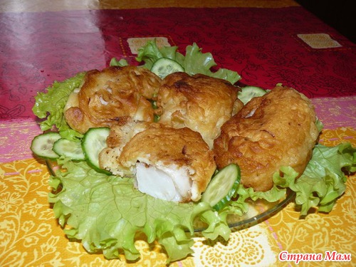 Филе режем на средние кусочки. Маринуем их в лимонном соке (или в соевом соусе, можно и то, и другое), солим, добавляем специи для рыбы (из пакетика).