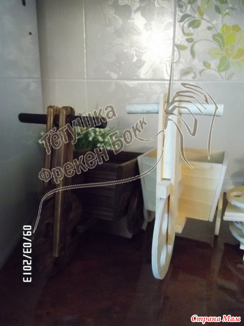 Вот такой, упросила сделать мужа, кашпо-велосипед для декора. Первый для меня, а теперь решили на продажу сделать.
